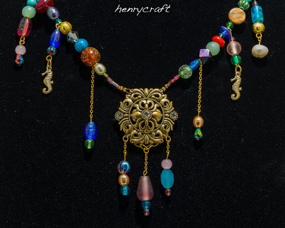 This custom jewelry features rare and high-quality semi-precious stones arranged in a random assortment or symmetrical design. Pearls can be included, but are not recommended for wearing the necklace in water. The metal findings are high-quality stainless steel, sterling silver, and gold-filled or plated, depending on the color scheme.